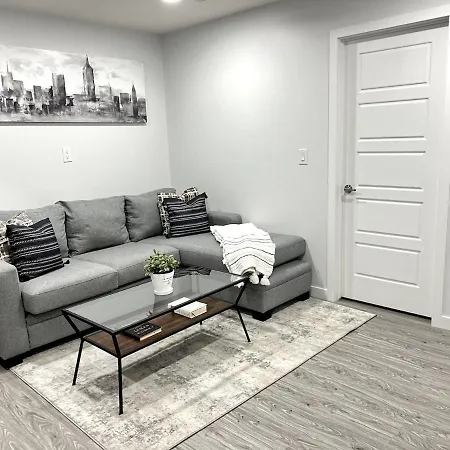 1-Br Suite With Private Entrance Near Restaurants, Shops, Local Amenities has a fully equipped kitchen, and comforts such as climate control.